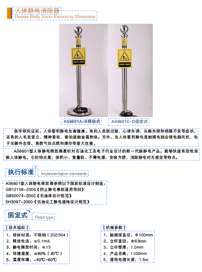 AS6601型人體靜電釋放器是針對(duì)石油化工及電子行業(yè)設(shè)計(jì)的新一代除靜電產(chǎn)品。